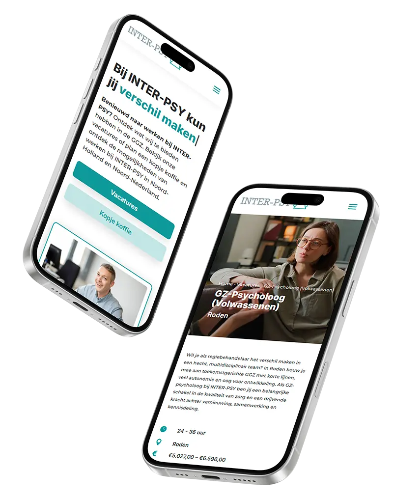 Voor INTER-PSY ontwikkelde Fribs een nieuwe werkenbij-website in nauwe samenwerking met de HR- en ICT-afdeling. Het doel: een toegankelijke, moderne site die het werkgeversmerk versterkt en het wervingsproces slimmer maakt. De website is volledig op maat ontworpen en gebouwd, met een naadloze API-koppeling met SDB.